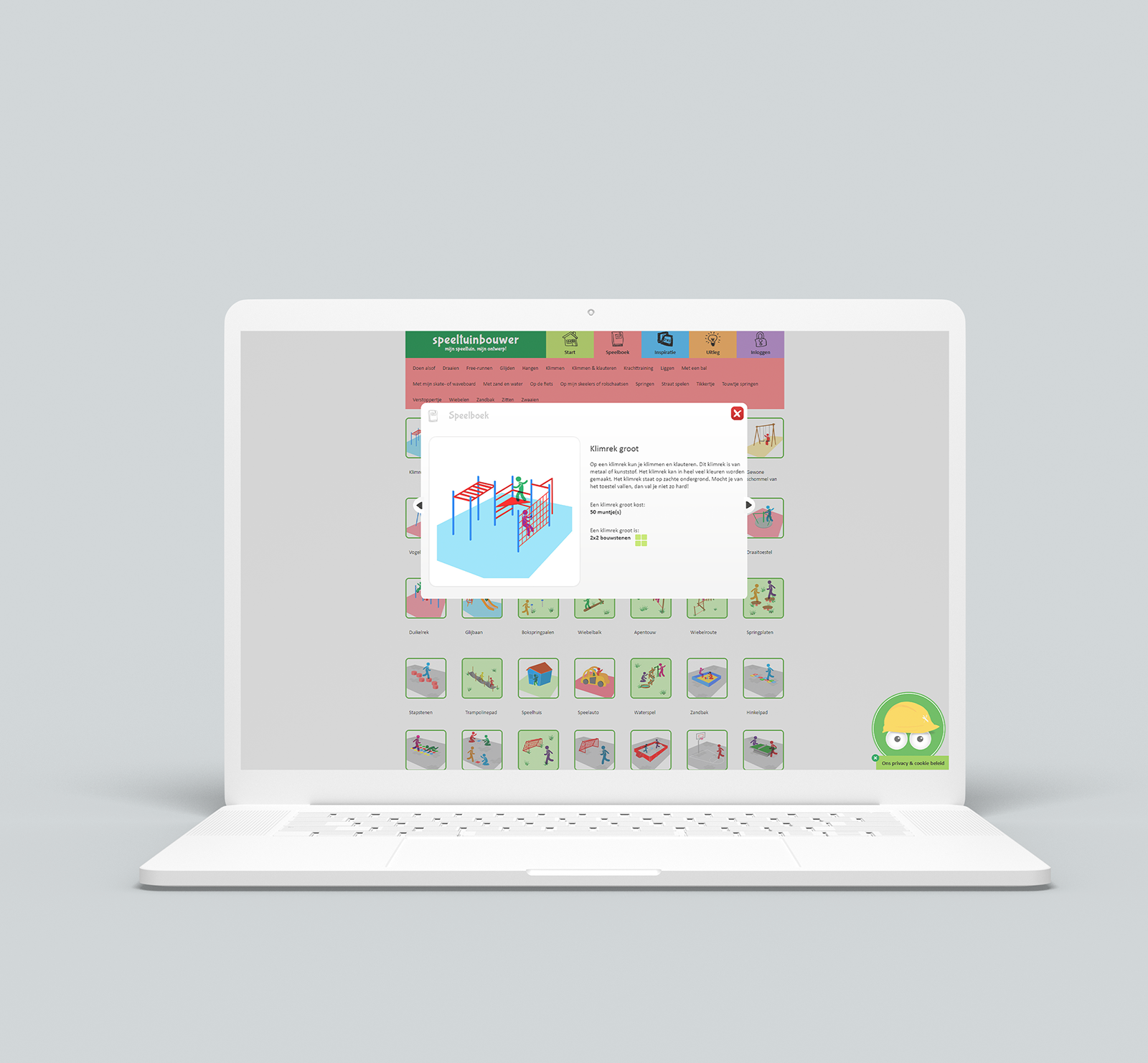 De speeltuinbouwer tool moest een webbased applicatie worden die op zowel desktop als tablet bruikbaar diende te zijn. Met deze tool moeten de gemeentes de buurt bewoners kunnen betrekken bij hun projecten. Kinderen moeten spelenderwijs met de webapplicatie hun eigen speelplek kunnen ontwerpen door toestel objecten op een plek op de kaart te slepen.